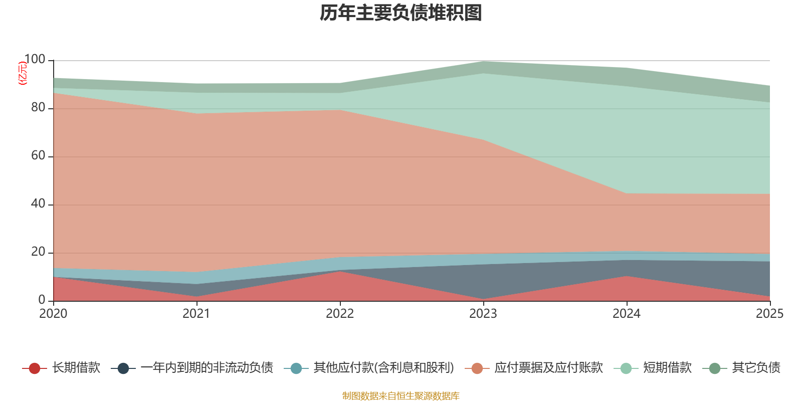负债重大变化方面,截至2025年末,公司一年内到期的非流动负债较上年末增加118.64%,占公司总资产比重上升9.32个百分点;长期借款较上年末减少82.73%,占公司总资产比重下降7.2个百分点;应付票据及应付账款较上年末增加4.83%,占公司总资产比重上升5.01个百分点;合同负债较上年末增加25.17%,占公司总资产比重上升0.47个百分点。