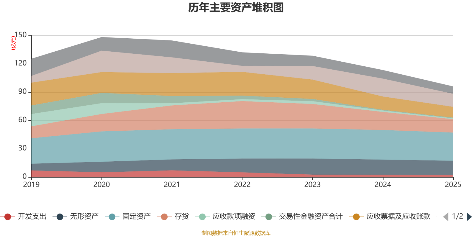 资产重大变化方面,截至2025年末,公司固定资产较上年末减少5.16%,占公司总资产比重上升3.32个百分点;货币资金较上年末减少27.52%,占公司总资产比重下降2.42个百分点;存货较上年末减少25.43%,占公司总资产比重下降2.02个百分点;无形资产较上年末减少6.14%,占公司总资产比重上升1.53个百分点。