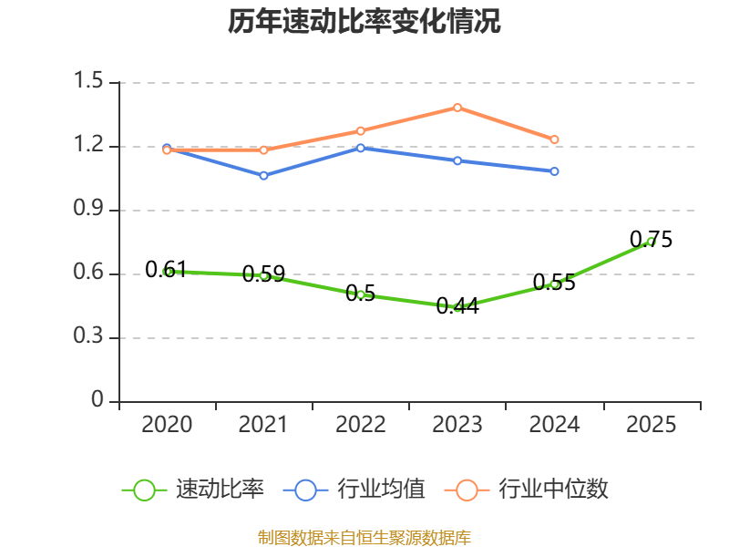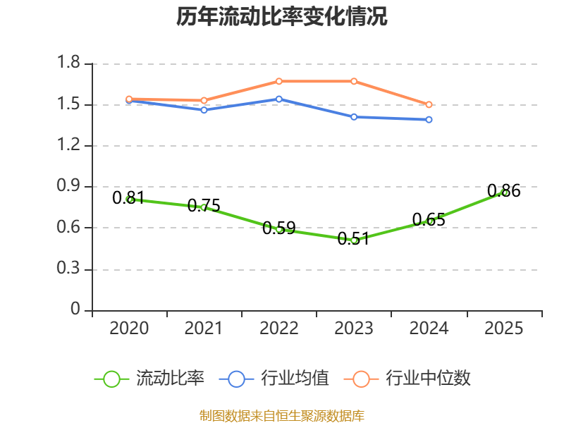 2025年,公司流动比率为0.86,速动比率为0.75。