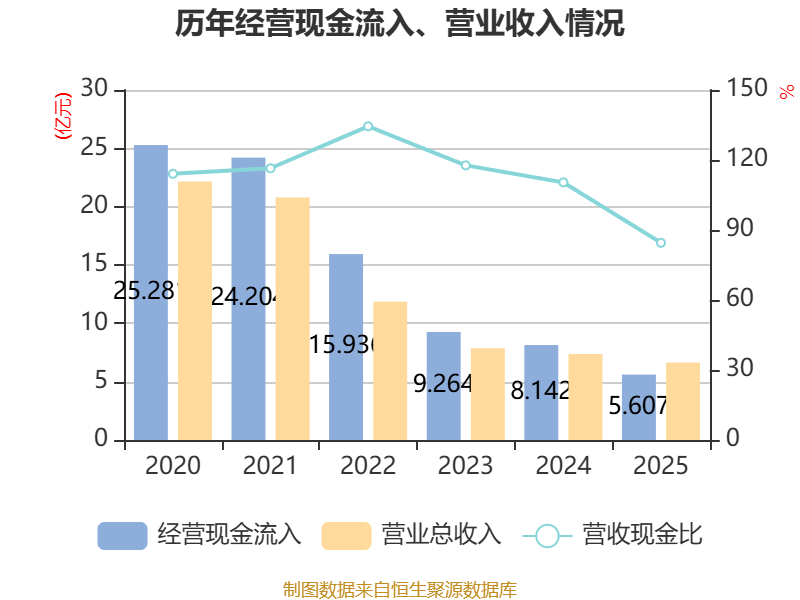 截至2025年,公司经营活动现金流净额为-6875.3万元,同比增加1231.7万元;筹资活动现金流净额1.01亿元,同比增加8789.59万元;投资活动现金流净额1918.25万元,上年同期为-2146.59万元。