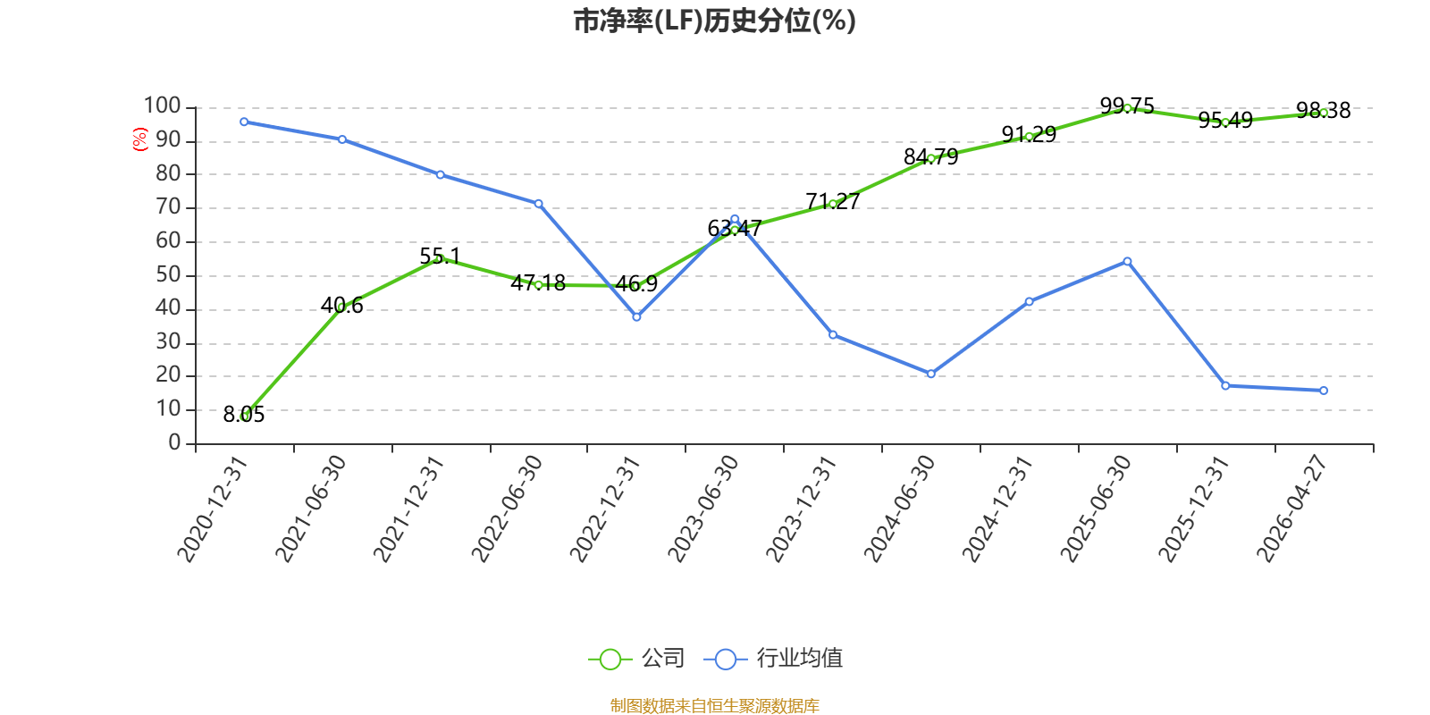 市盈率、市净率为负时,不显示当期分位数,会导致折线图中断。