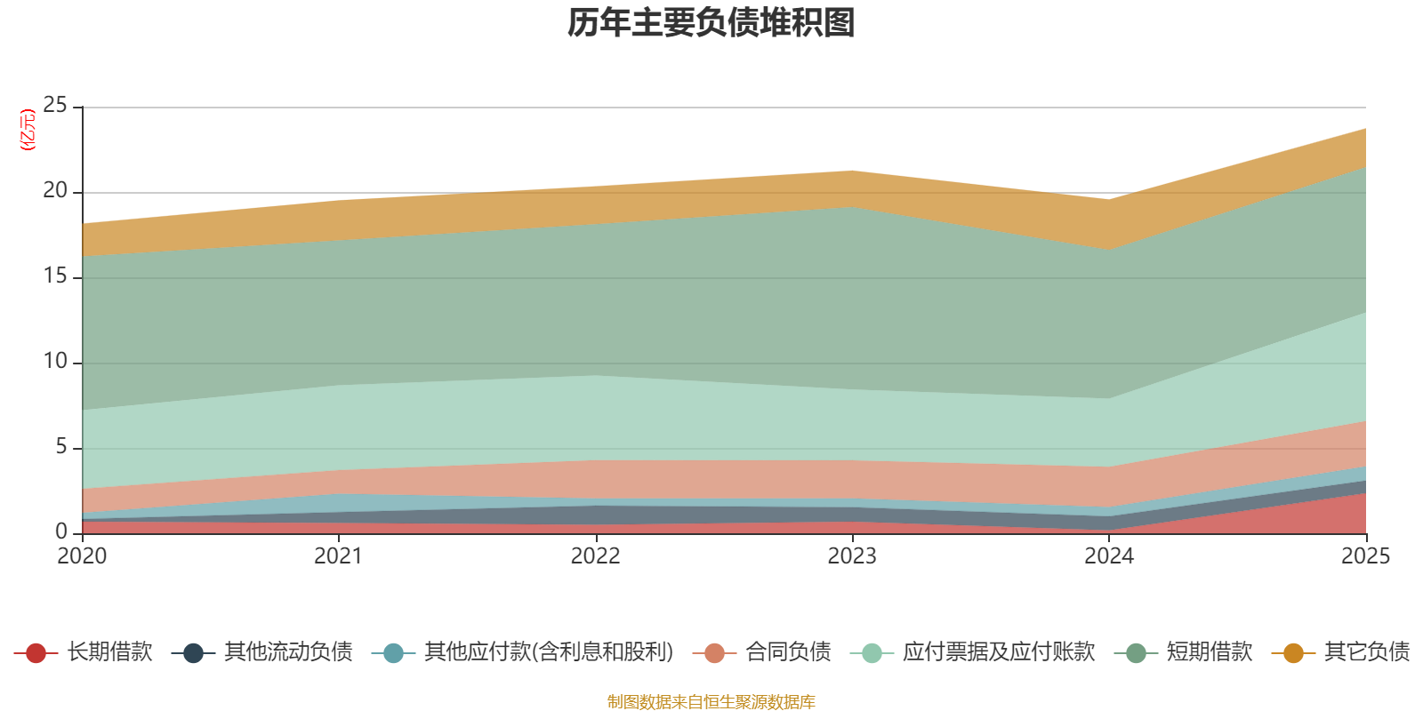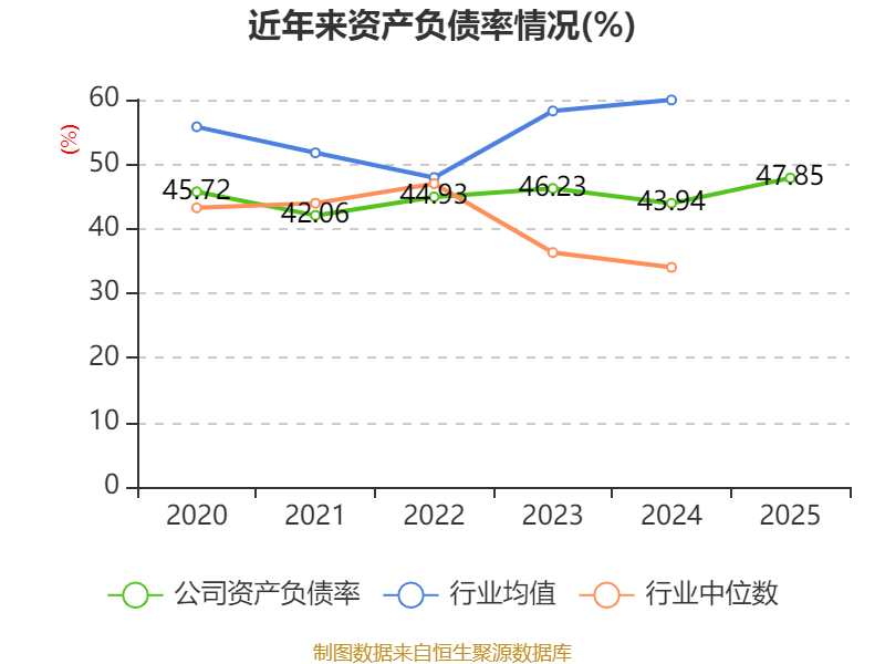 负债重大变化方面,截至2025年末,公司长期借款较上年末增加1333.36%,占公司总资产比重上升4.35个百分点;应付票据及应付账款较上年末增加59.21%,占公司总资产比重上升3.85个百分点;短期借款较上年末减少2.27%,占公司总资产比重下降2.4个百分点;长期应付款合计较上年末减少100%,占公司总资产比重下降1.06个百分点。