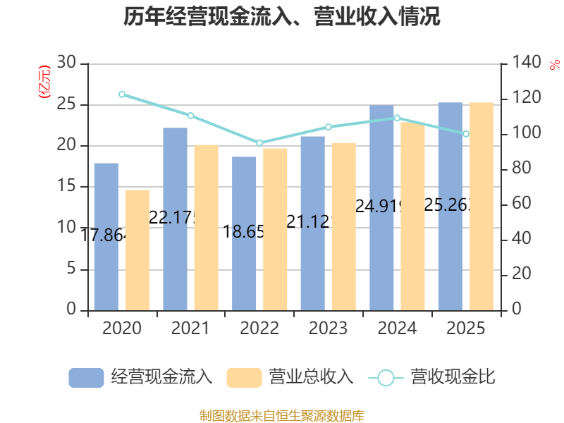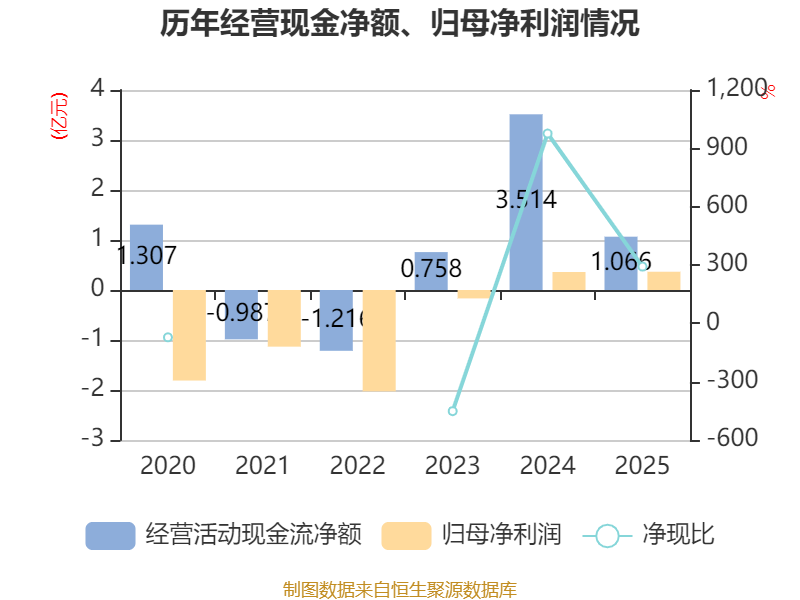 截至2025年,公司经营活动现金流净额为1.07亿元,同比下降69.66%;筹资活动现金流净额1.04亿元,同比增加4.56亿元;投资活动现金流净额-1.83亿元,上年同期为-3899.93万元。