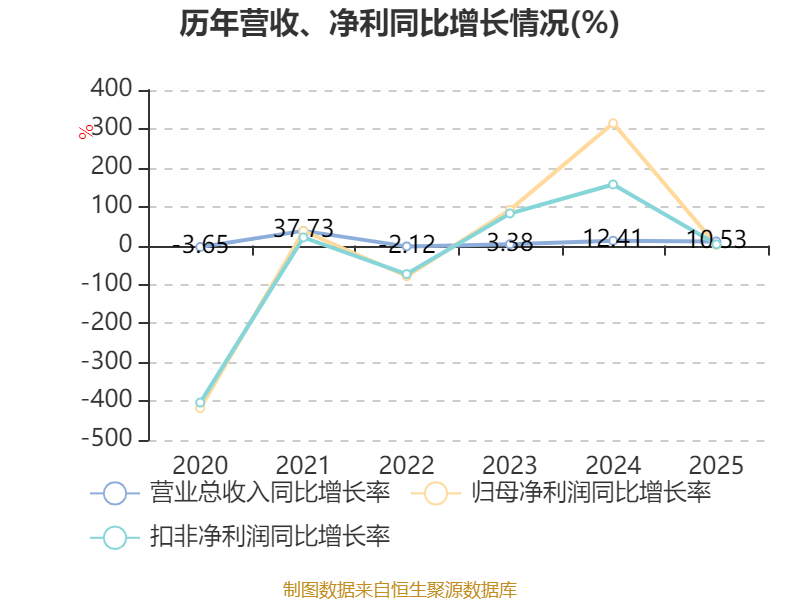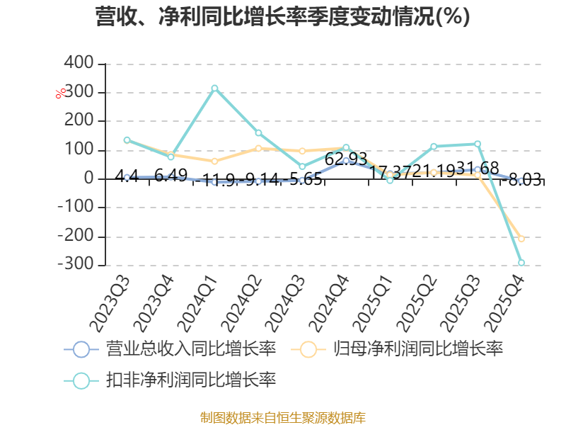 资产重大变化方面,截至2025年末,公司交易性金融资产合计较上年末增加193207.57%,占公司总资产比重上升3.84个百分点;开发支出较上年末减少93.91%,占公司总资产比重下降3.6个百分点;无形资产较上年末增加65.82%,占公司总资产比重上升2.46个百分点;其他流动资产较上年末减少33.18%,占公司总资产比重下降1.56个百分点。