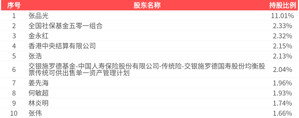 公司股东户数为3.38万户,前十大股东持股数量为1.10亿股,占总股本比例为29.28%,前十大股东持股情况如下: