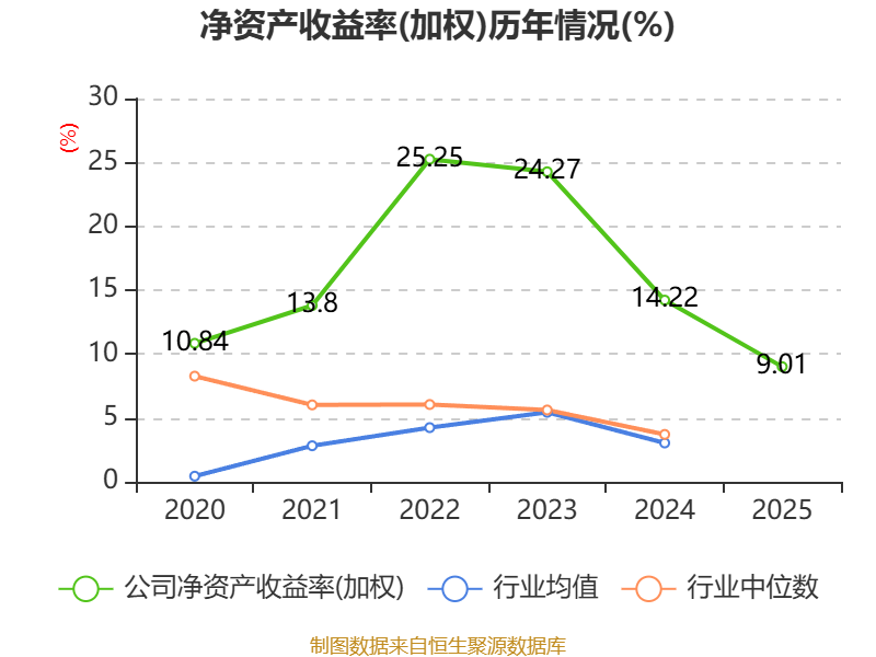 数据显示,2025年公司加权平均净资产收益率为9.01%,较上年同期下降5.21个百分点。公司2025年投入资本回报率为8.38%,较上年同期下降5.6个百分点。