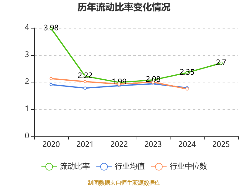 2025年,公司流动比率为2.7,速动比率为1.73。