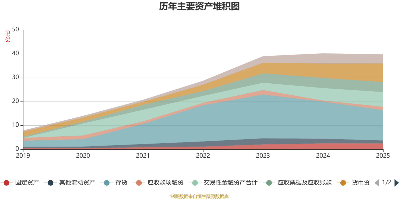 资产重大变化方面,截至2025年末,公司存货较上年末减少18.19%,占公司总资产比重下降6.73个百分点;货币资金较上年末增加30.15%,占公司总资产比重上升4.72个百分点;交易性金融资产合计较上年末增加18.49%,占公司总资产比重上升2.55个百分点;应收款项融资较上年末增加206.41%,占公司总资产比重上升2.35个百分点。