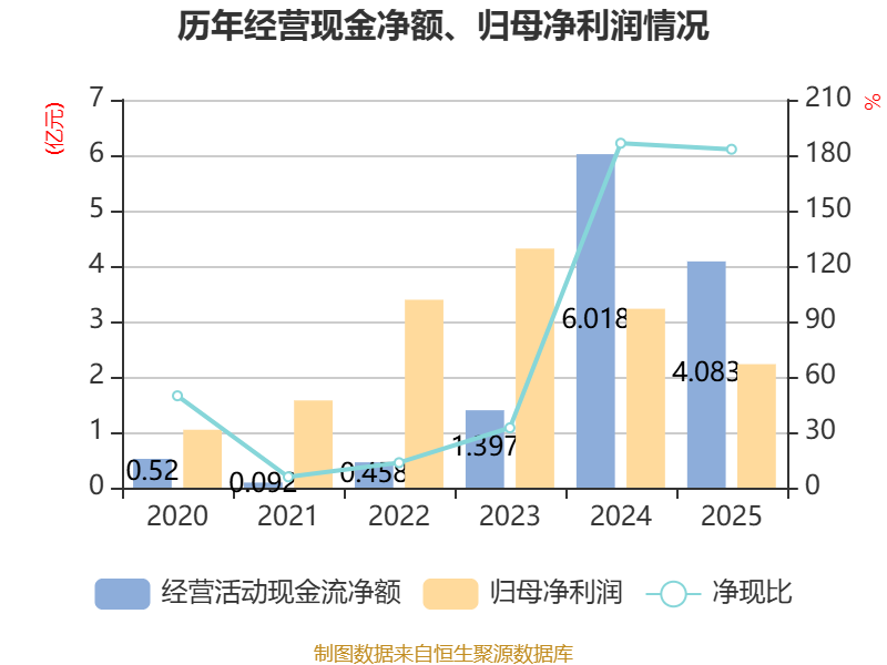 截至2025年,公司经营活动现金流净额为4.08亿元,同比下降32.15%;筹资活动现金流净额-9134.91万元,同比减少1876.04万元;投资活动现金流净额-1.9亿元,上年同期为-3.72亿元。