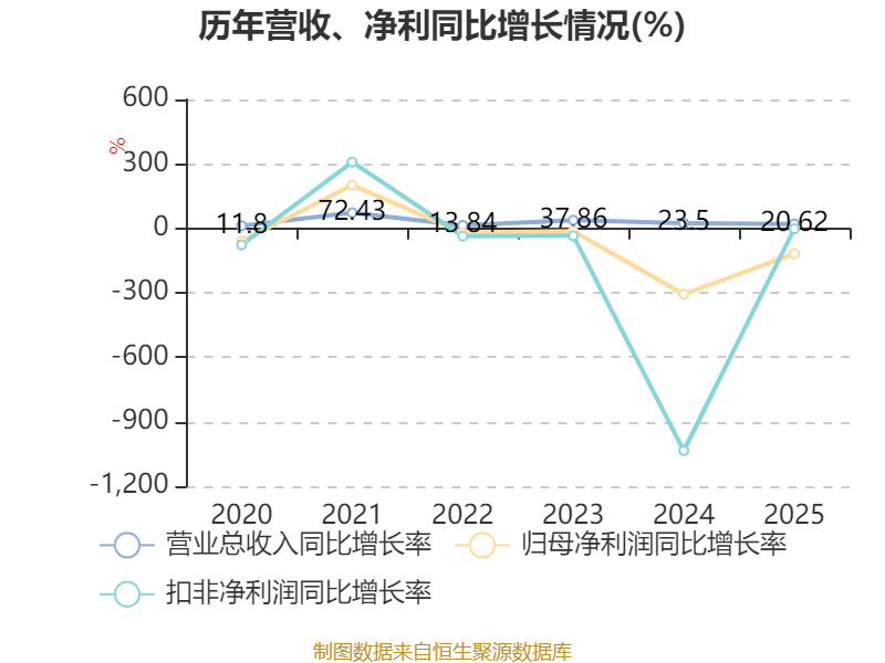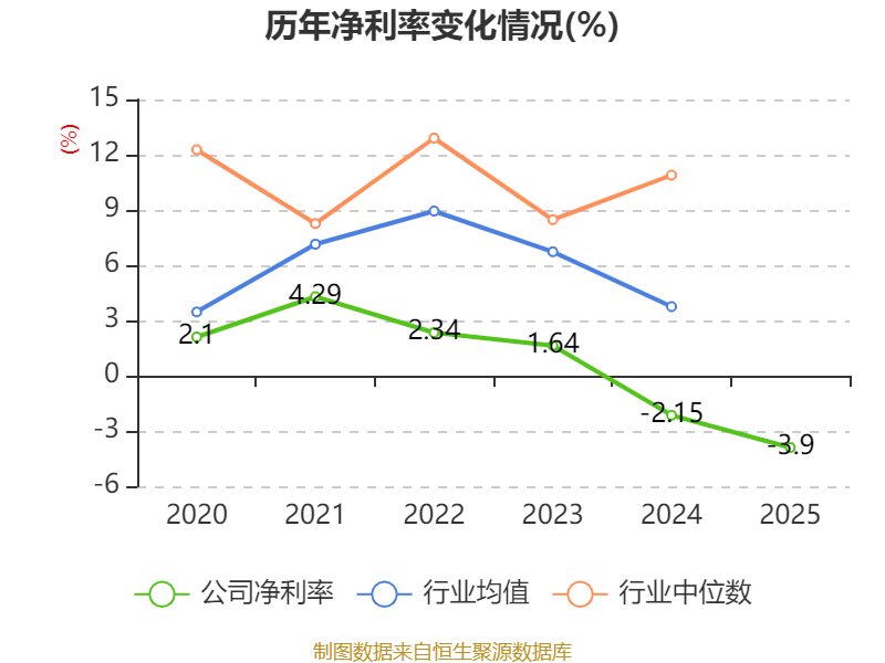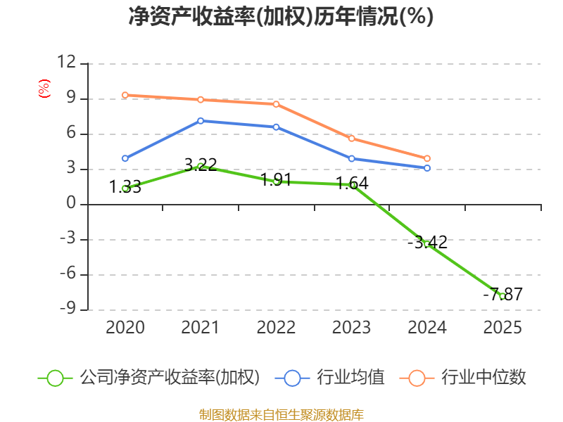 数据显示,2025年公司加权平均净资产收益率为-7.87%,较上年同期下降4.45个百分点。公司2025年投入资本回报率为-3.34%,较上年同期下降2.43个百分点。