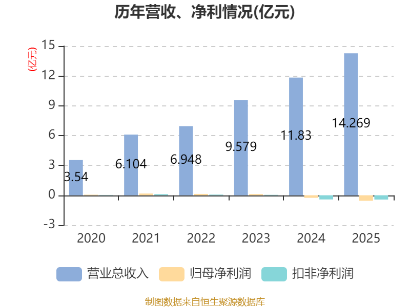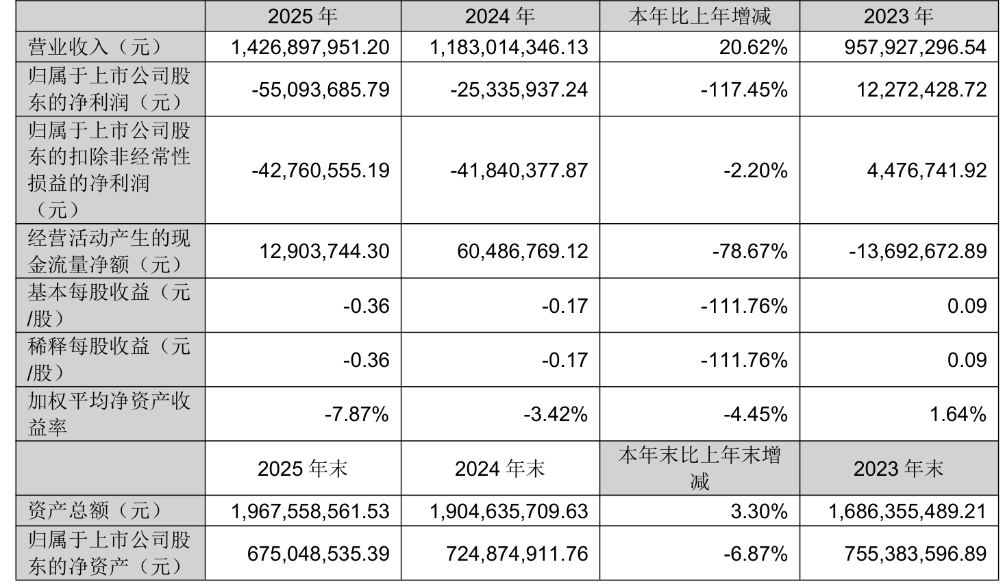 中证智能财讯阿石创(300706)4月28日披露2025年年度报告。2025年,公司实现营业总收入14.27亿元,同比增长20.62%;归母净利润亏损5509.37万元,上年同期亏损2533.59万元;扣非净利润亏损4276.06万元,上年同期亏损4184.04万元;经营活动产生的现金流量净额为1290.37万元,同比下降78.67%;报告期内,阿石创基本每股收益为-0.36元,加权平均净资产收益率为-7.87%。
