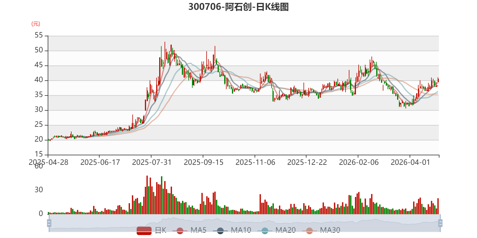 值得注意的是,中登公司数据显示,截至2026年4月24日,阿石创20.53%股份处于质押状态。年报显示,第一大股东陈钦忠质押1868万股公司股份,占其全部持股的38.66%;第三大股东福州科拓投资有限公司质押700万股公司股份,占其全部持股的84.28%;第二大股东陈秀梅质押280万股公司股份,占其全部持股的24.44%。