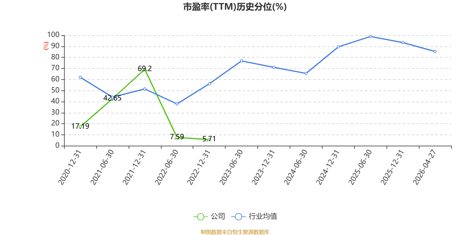 市盈率、市净率为负时,不显示当期分位数,会导致折线图中断。