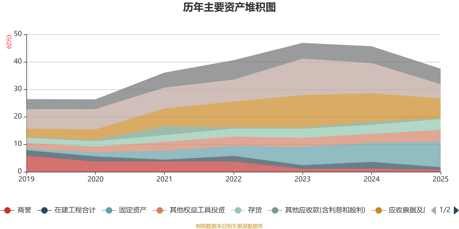 资产重大变化方面,截至2025年末,公司货币资金较上年末减少53.46%,占公司总资产比重下降10.46个百分点;固定资产较上年末增加33.53%,占公司总资产比重上升9.5个百分点;其他权益工具投资较上年末增加33.26%,占公司总资产比重上升4.48个百分点;存货较上年末增加18.56%,占公司总资产比重上升3.18个百分点。
