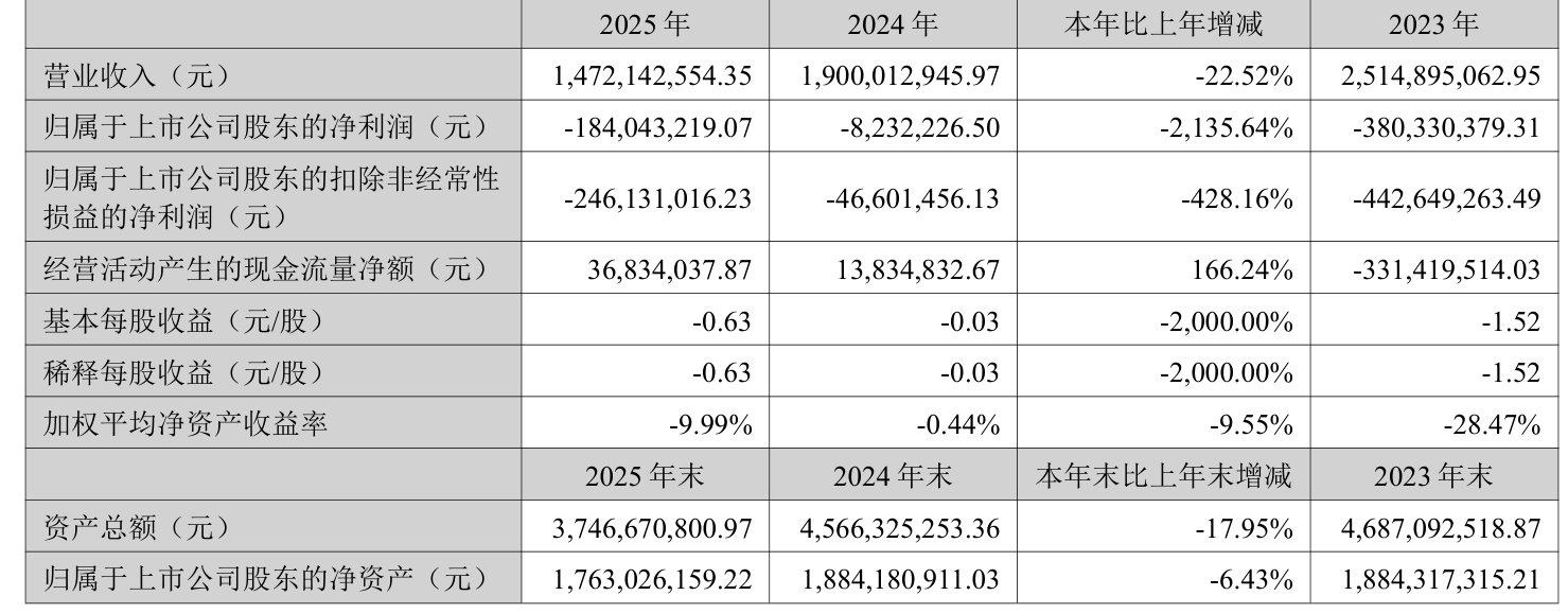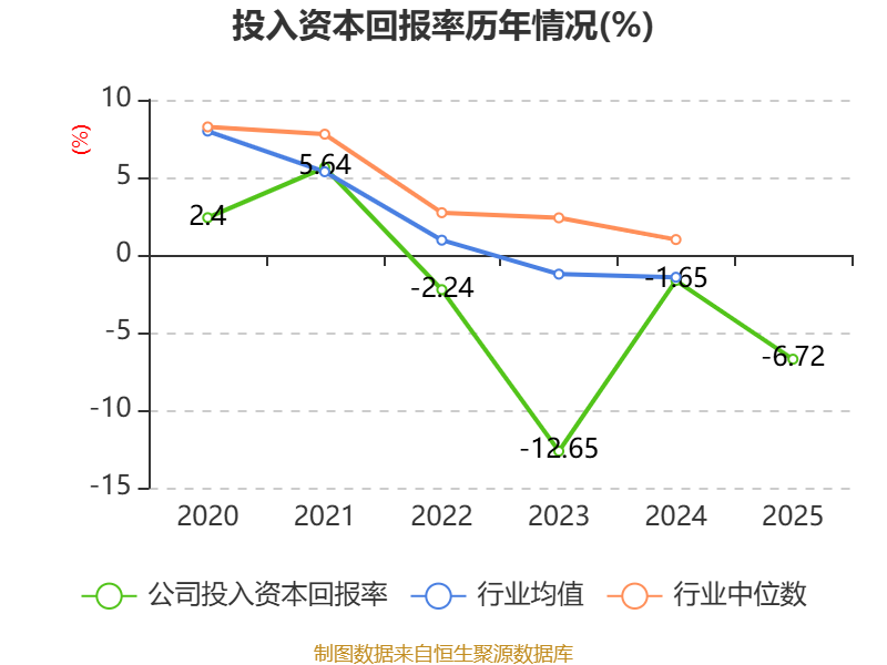 数据显示,2025年公司加权平均净资产收益率为-9.99%,较上年同期下降9.55个百分点。公司2025年投入资本回报率为-6.72%,较上年同期下降5.07个百分点。