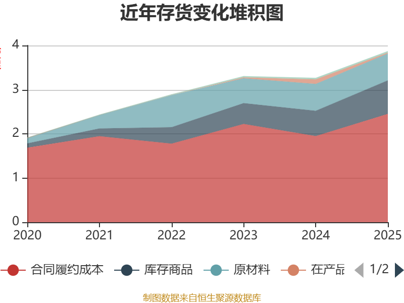 从存货变动来看,截至2025年末,公司存货账面价值为3.87亿元,占净资产的21.96%,较上年末增加6060.86万元。其中,存货跌价准备为8237.51万元,计提比例为17.55%。