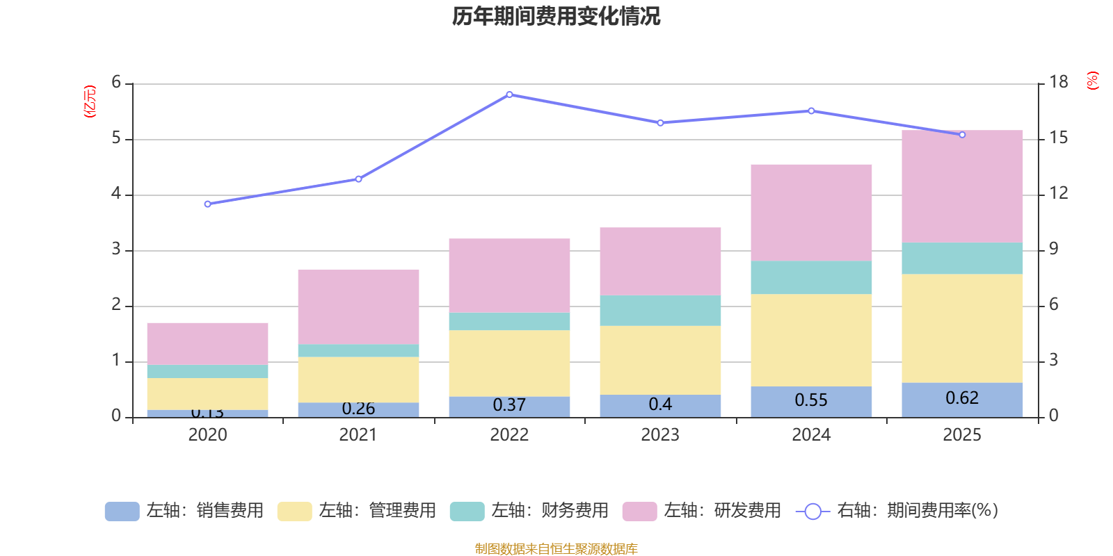 2025年全年,公司研发投入金额为2.02亿元,同比增长16.7%;研发投入占营业收入比例为5.96%,相比上年同期下降0.34个百分点。此外,公司全年研发投入资本化率为0%。