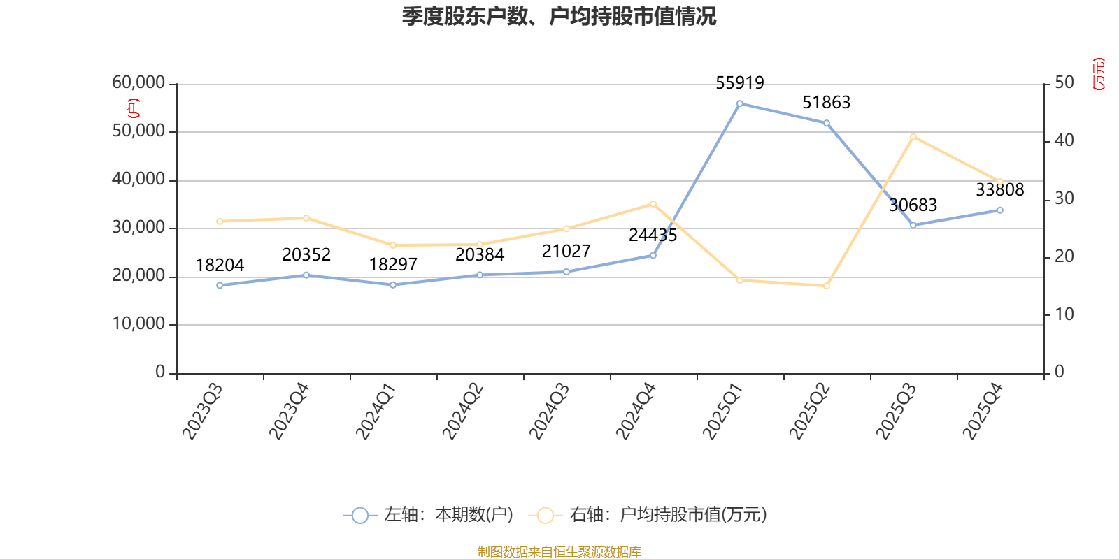 年报显示,2025年末的公司十大流通股东中,新进股东为谭家勇,取代了三季度末的2023年员工持股计划。在具体持股比例上,全国社保基金五零一组合、交银施罗德国寿股份均衡股票传统可供出售单一资产管理计划、姜先海、何敏超持股有所上升,香港中央结算有限公司、谷晶晶持股有所下降。