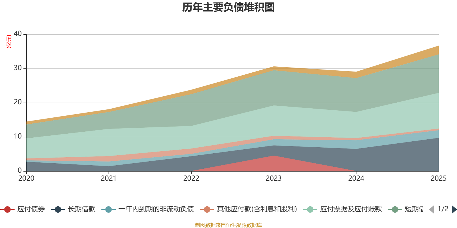 负债重大变化方面,截至2025年末,公司长期借款较上年末增加50.37%,占公司总资产比重上升3.22个百分点;应付票据及应付账款较上年末增加36.39%,占公司总资产比重上升2.12个百分点;一年内到期的非流动负债较上年末减少12.17%,占公司总资产比重下降1.25个百分点;短期借款较上年末增加13.92%,占公司总资产比重下降0.78个百分点。