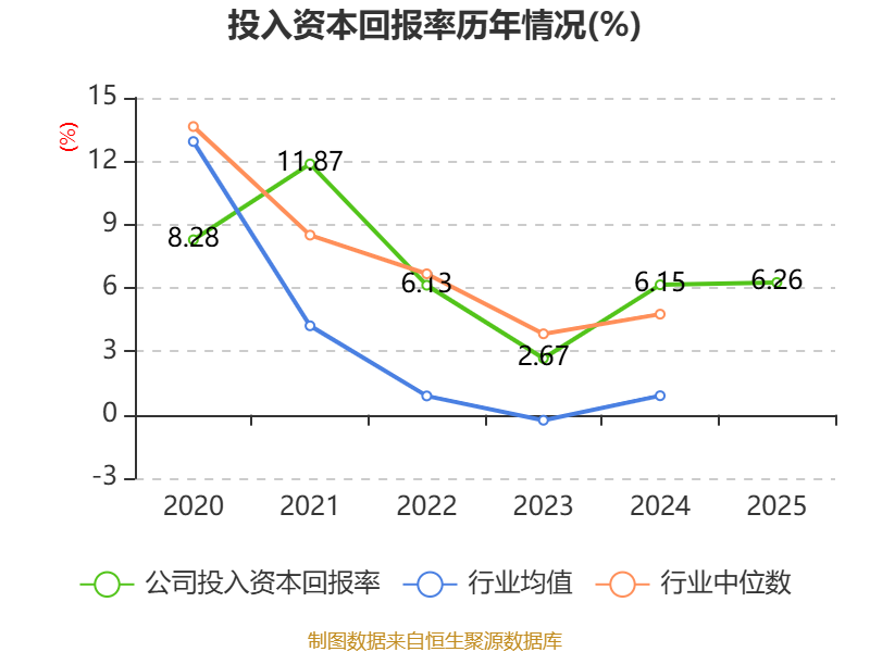 数据显示,2025年公司加权平均净资产收益率为9.75%,较上年同期上升0.35个百分点。公司2025年投入资本回报率为6.26%,较上年同期上升0.11个百分点。