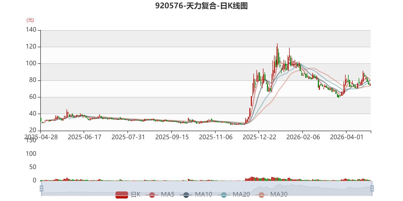 以4月27日收盘价计算,天力复合目前市盈率(TTM)约为401倍,市净率(LF)约18.31倍,市销率(TTM)约15.56倍。