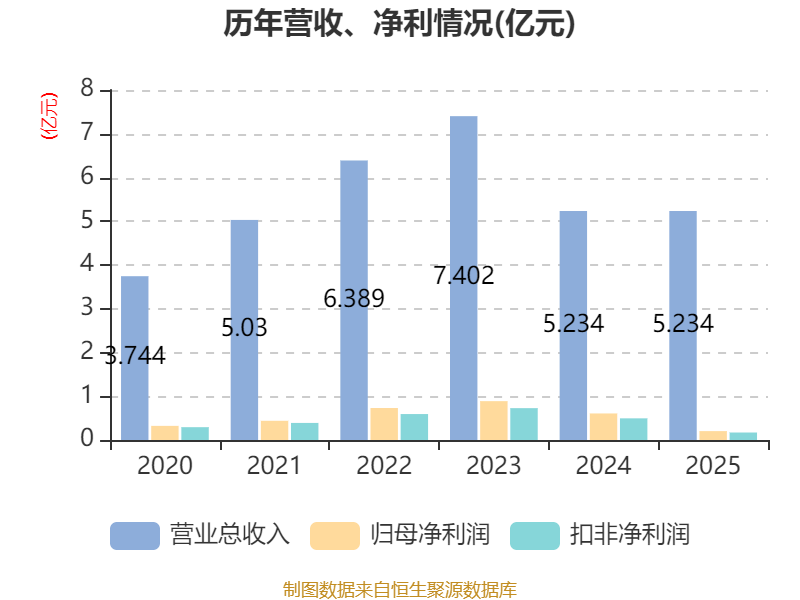 中证智能财讯天力复合(920576)4月27日披露2025年年度报告。2025年,公司实现营业总收入5.23亿元,同比下降0.01%;归母净利润2030.93万元,同比下降66.55%;扣非净利润1706.27万元,同比下降65.55%;经营活动产生的现金流量净额为2038.51万元,同比增长50.65%;报告期内,天力复合基本每股收益为0.1864元,加权平均净资产收益率为4.56%。公司2025年度分配预案为:拟向全体股东每10股派现1元(含税)。