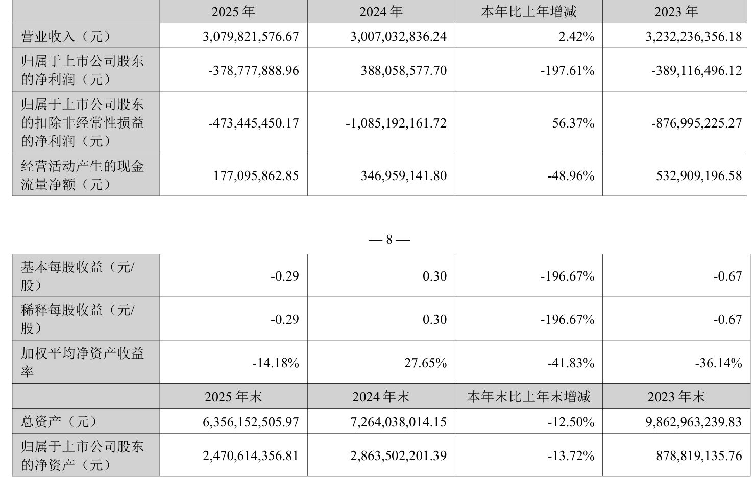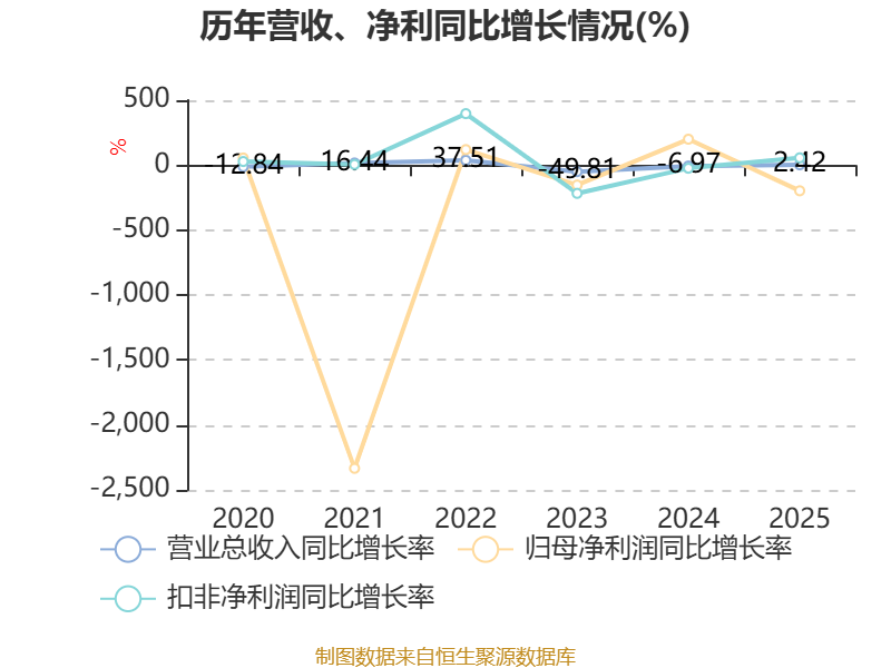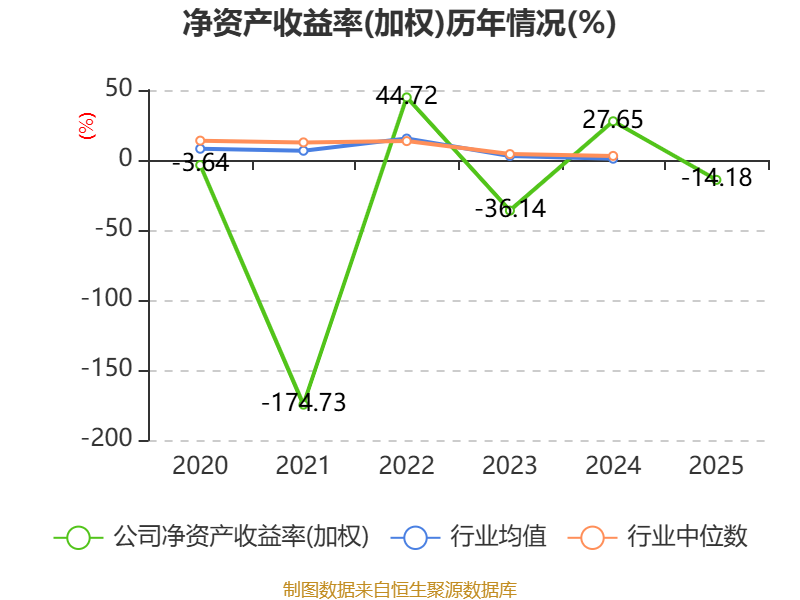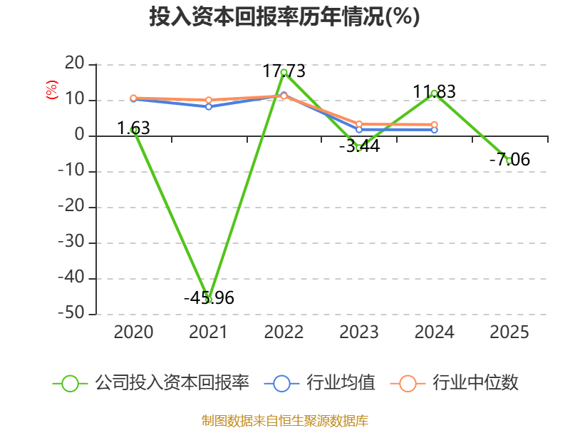 数据显示,2025年公司加权平均净资产收益率为-14.18%,较上年同期下降41.83个百分点。公司2025年投入资本回报率为-7.06%,较上年同期下降18.89个百分点。