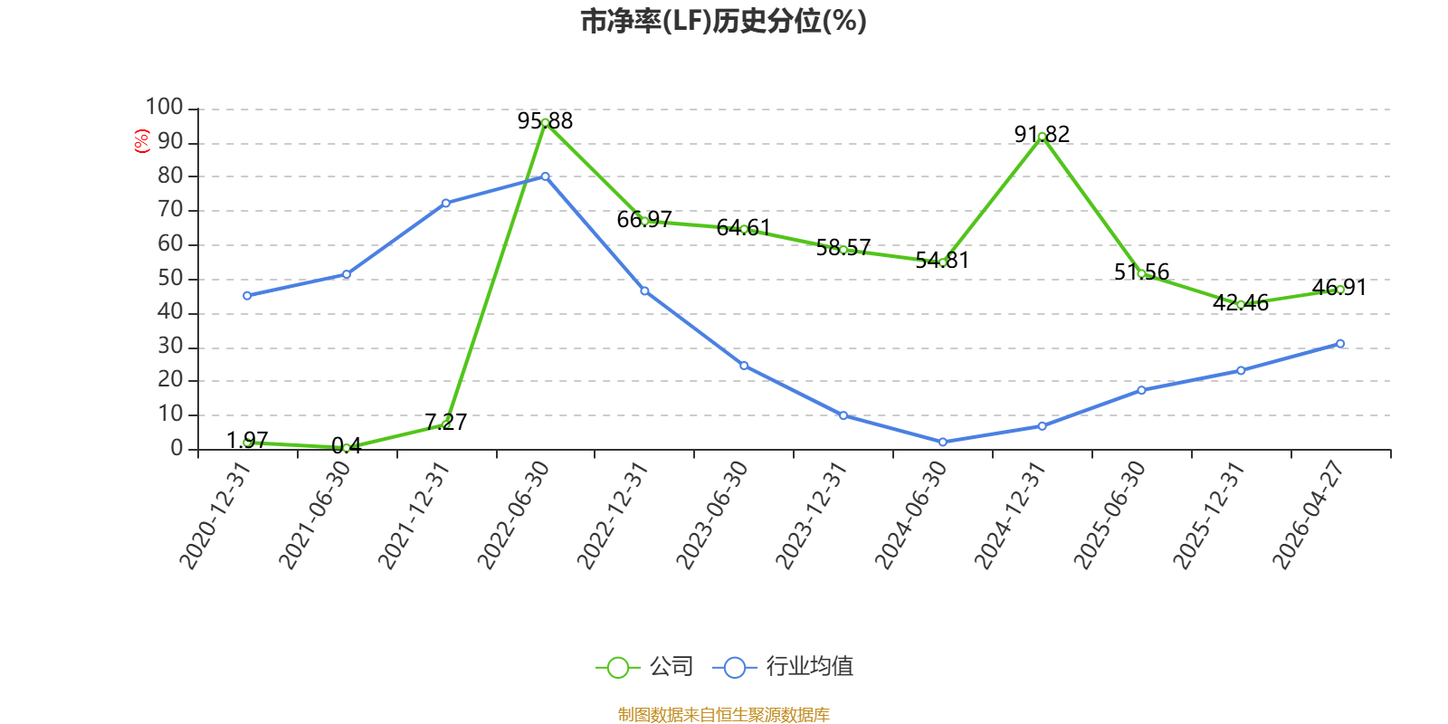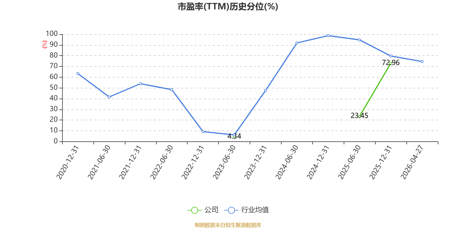 市盈率、市净率为负时,不显示当期分位数,会导致折线图中断。