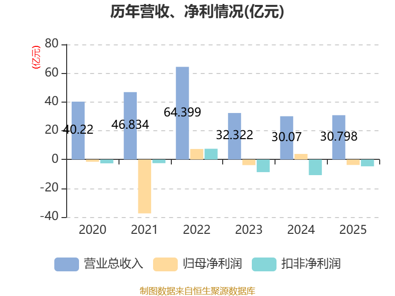 中证智能财讯红太阳(000525)4月28日披露2025年年度报告。2025年,公司实现营业总收入30.8亿元,同比增长2.42%;归母净利润亏损3.79亿元,上年同期盈利3.88亿元;扣非净利润亏损4.73亿元,上年同期亏损10.85亿元;经营活动产生的现金流量净额为1.77亿元,同比下降48.96%;报告期内,红太阳基本每股收益为-0.29元,加权平均净资产收益率为-14.18%。