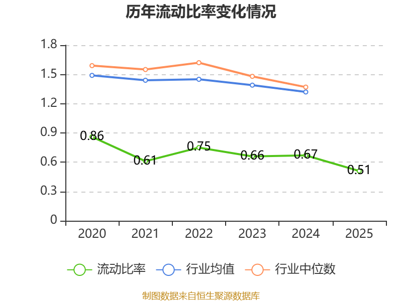 2025年,公司流动比率为0.51,速动比率为0.36。
