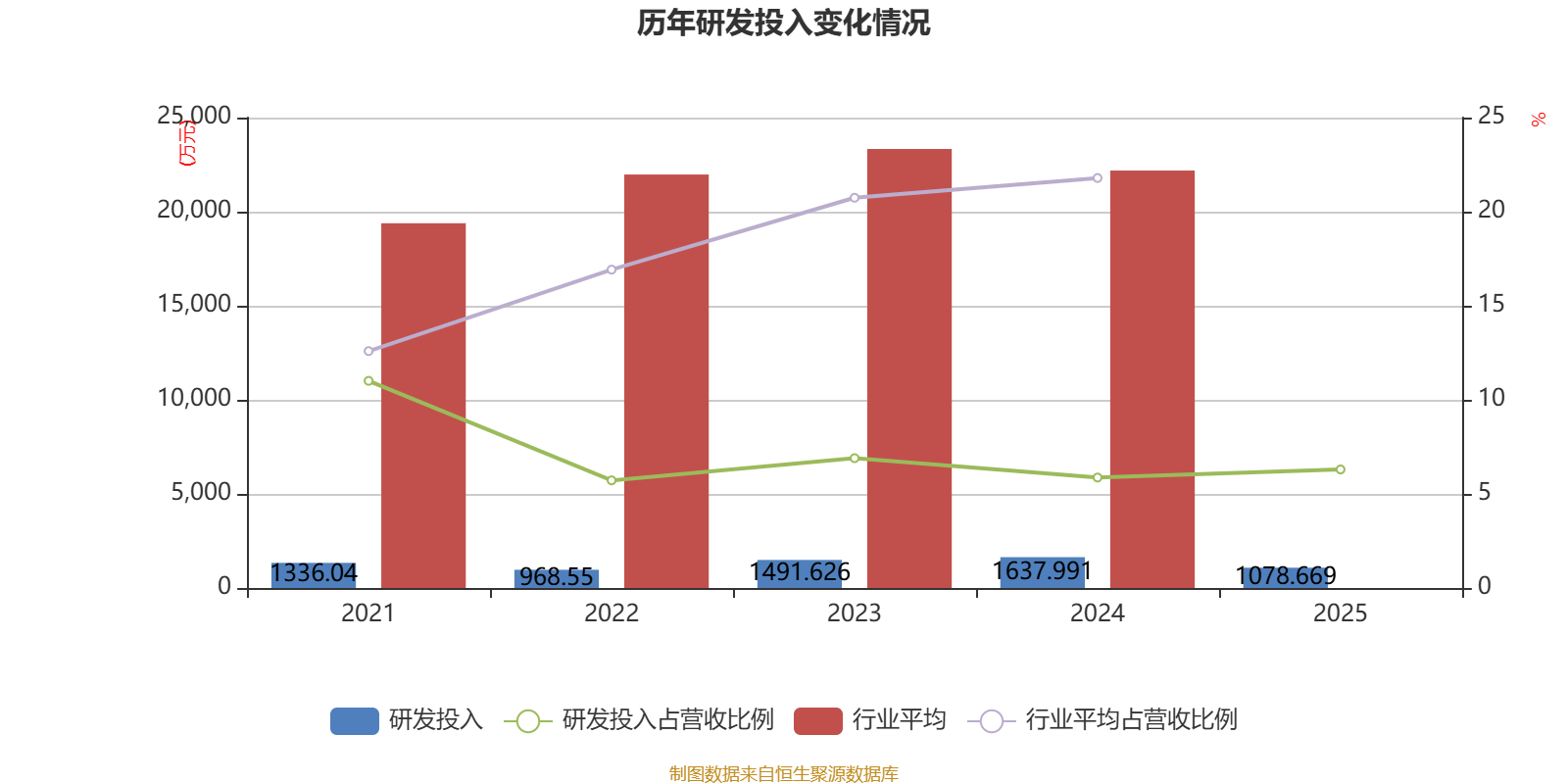 2025年全年,公司研发投入金额为1078.67万元,同比下降34.15%;研发投入占营业收入比例为6.3%,相比上年同期上升0.43个百分点。此外,公司全年研发投入资本化率为0%。
