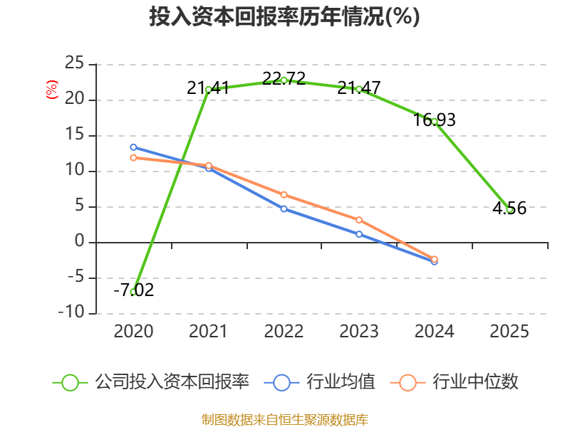 数据显示,2025年公司加权平均净资产收益率为5.14%,较上年同期下降17.65个百分点。公司2025年投入资本回报率为4.56%,较上年同期下降12.37个百分点。