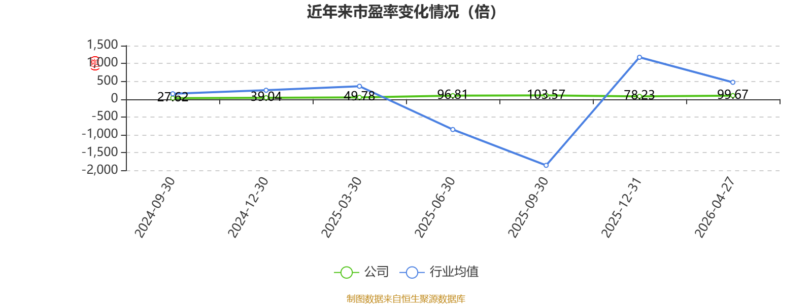 以4月27日收盘价计算,成电光信目前市盈率(TTM)约为99.67倍,市净率(LF)约4.99倍,市销率(TTM)约9.43倍。