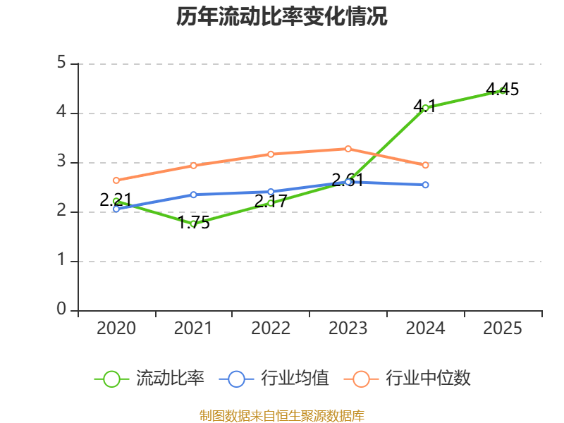 2025年,公司流动比率为4.45,速动比率为3.49。