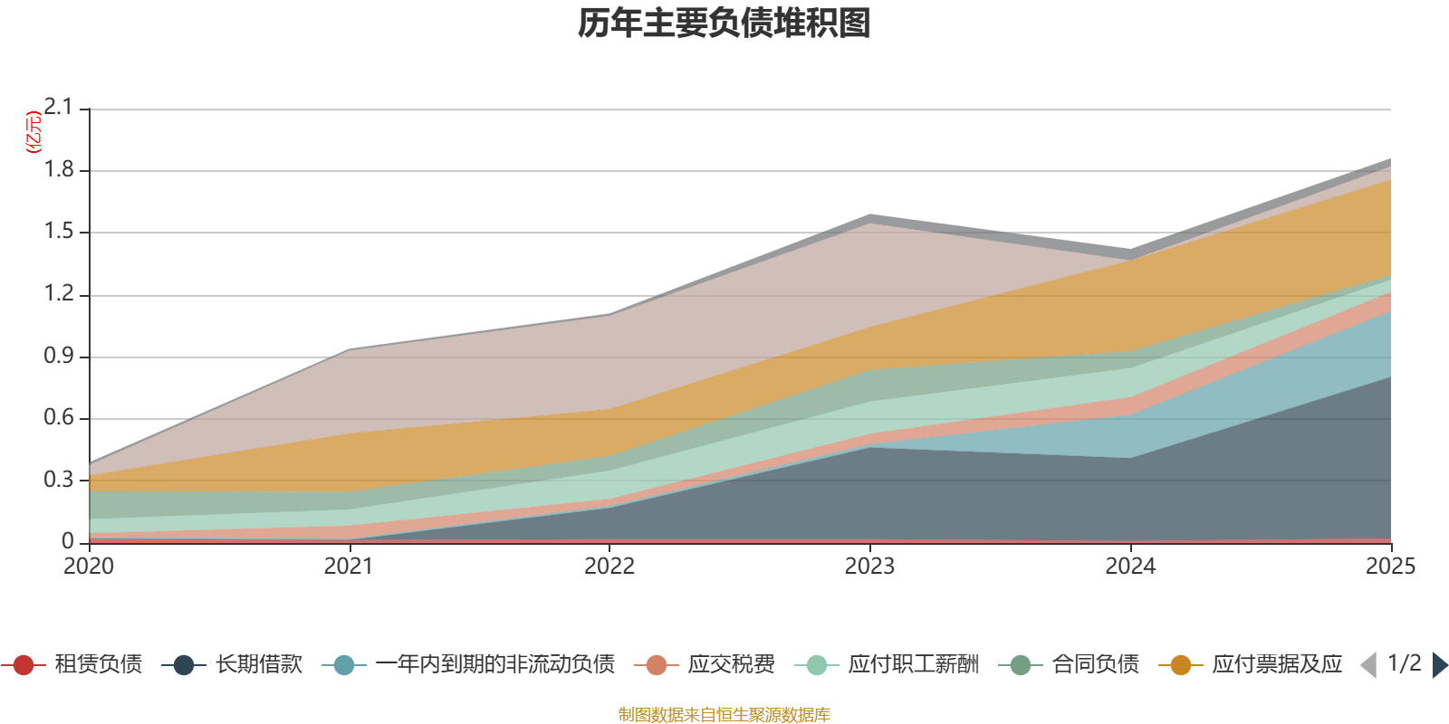负债重大变化方面,截至2025年末,公司长期借款较上年末增加95.25%,占公司总资产比重上升6.4个百分点;应付职工薪酬较上年末减少57.51%,占公司总资产比重下降1.95个百分点;一年内到期的非流动负债较上年末增加50.86%,占公司总资产比重上升1.54个百分点;合同负债较上年末减少71.46%,占公司总资产比重下降1.37个百分点。