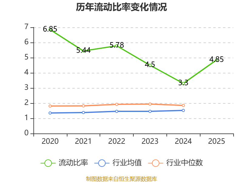 2025年,公司流动比率为4.85,速动比率为4.02。