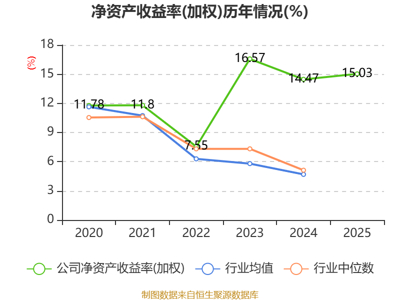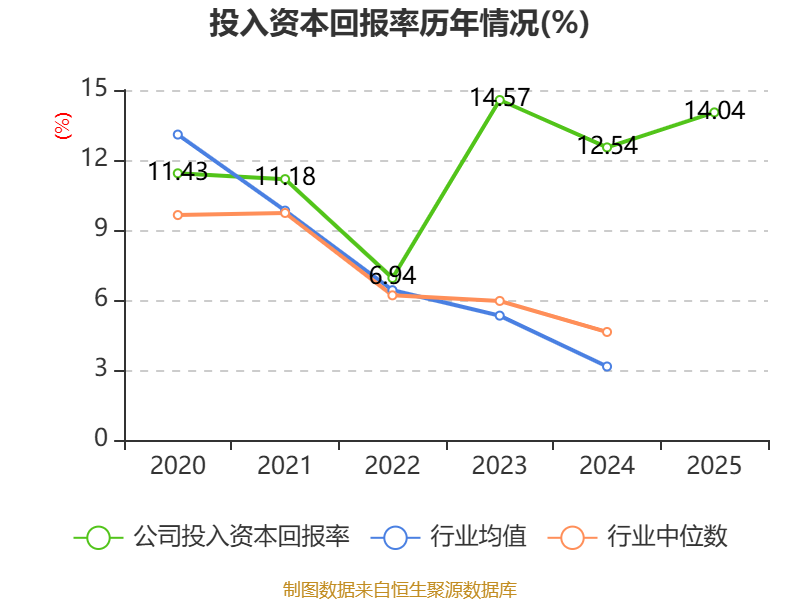 数据显示,2025年公司加权平均净资产收益率为15.03%,较上年同期上升0.56个百分点。公司2025年投入资本回报率为14.04%,较上年同期上升1.5个百分点。