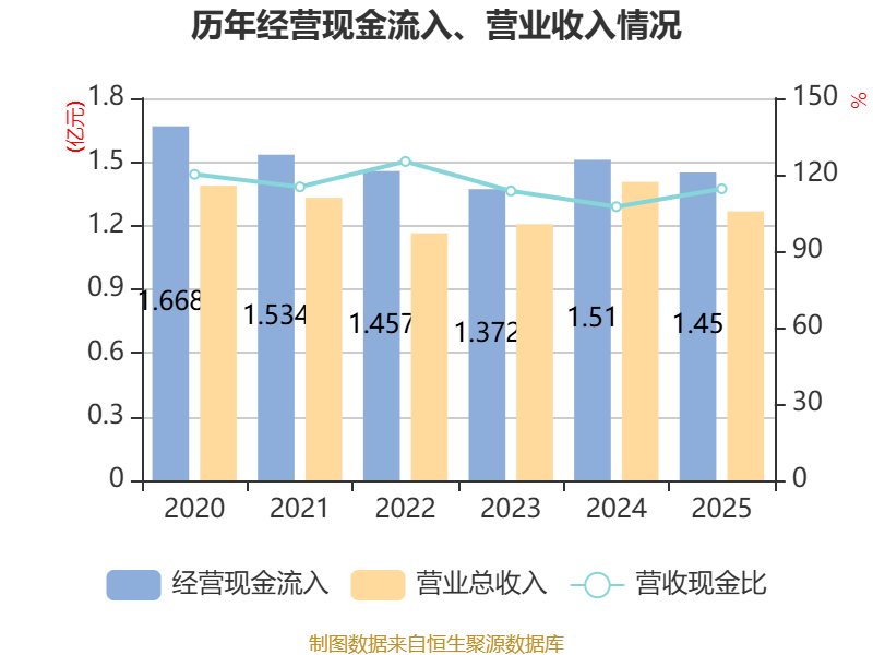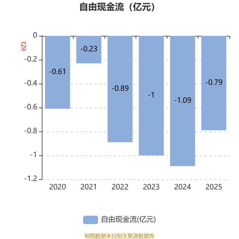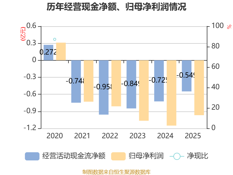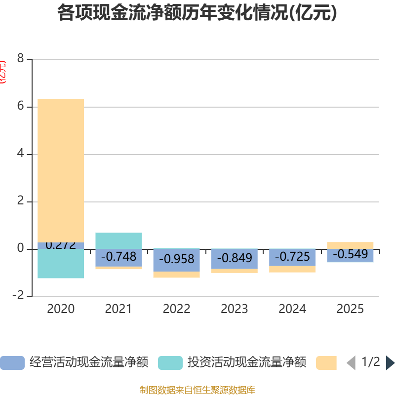 截至2025年,公司经营活动现金流净额为-5485.04万元,同比增加1762.37万元;筹资活动现金流净额2866.91万元,同比增加5553.59万元;投资活动现金流净额-169.19万元,上年同期为131.62万元。
