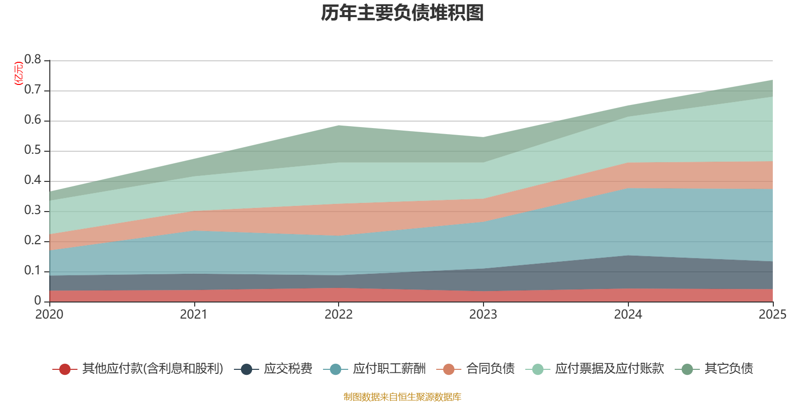 负债重大变化方面,截至2025年末,公司应付票据及应付账款较上年末增加40.57%,占公司总资产比重上升1.75个百分点;应付职工薪酬较上年末增加7.73%,占公司总资产比重上升0.9个百分点;合同负债较上年末增加8.21%,占公司总资产比重上升0.35个百分点;应交税费较上年末减少16.42%,占公司总资产比重下降0.16个百分点。