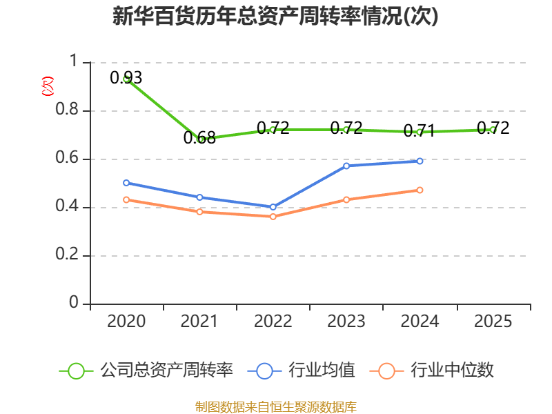 中证智能财讯新华百货(600785)4月28日披露2025年年度报告。2025年,公司实现营业总收入59.72亿元,同比下降2.36%;归母净利润7448.93万元,同比下降44.79%;扣非净利润8477.14万元,同比下降17.72%;经营活动产生的现金流量净额为9.25亿元,同比增长9.31%;报告期内,新华百货基本每股收益为0.33元,加权平均净资产收益率为3.30%。公司2025年度分配预案为:拟向全体股东每10股转4股,派现1元(含税)。