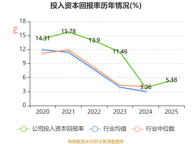 数据显示,2025年公司加权平均净资产收益率为6.66%,较上年同期上升2.62个百分点。公司2025年投入资本回报率为5.38%,较上年同期上升1.52个百分点。
