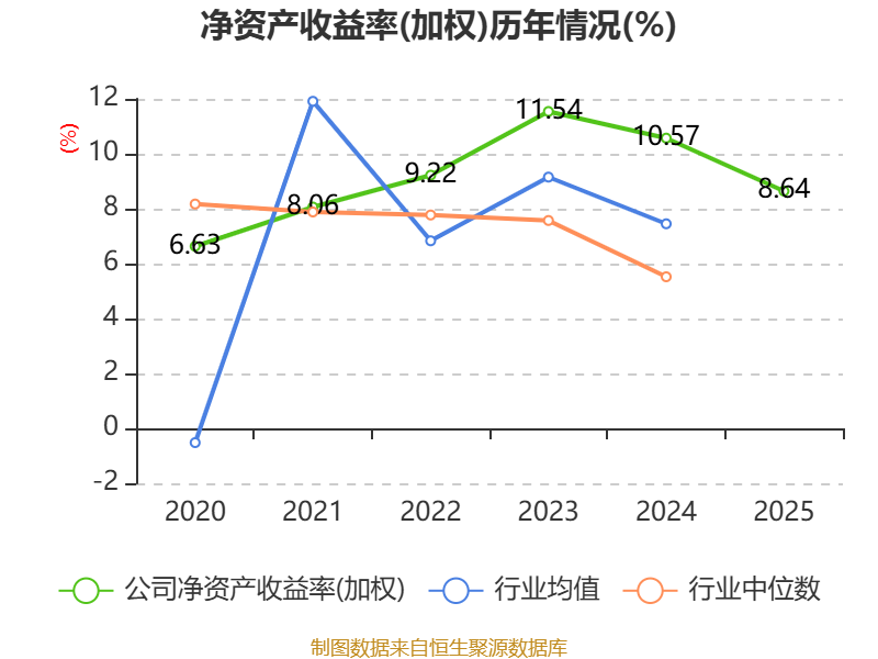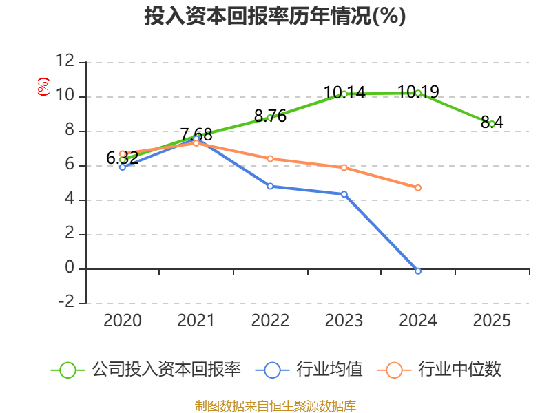 数据显示,2025年公司加权平均净资产收益率为8.64%,较上年同期下降1.93个百分点。公司2025年投入资本回报率为8.4%,较上年同期下降1.79个百分点。