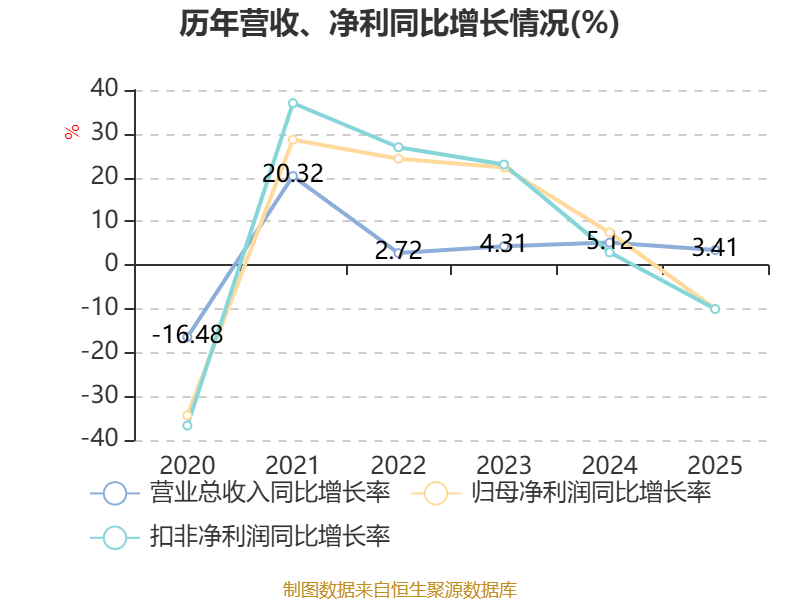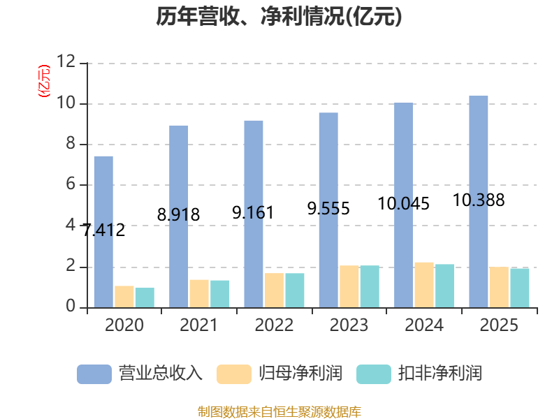 中证智能财讯汉森制药(002412)4月28日披露2025年年度报告。2025年,公司实现营业总收入10.39亿元,同比增长3.41%;归母净利润1.98亿元,同比下降10.05%;扣非净利润1.9亿元,同比下降10.08%;经营活动产生的现金流量净额为2.45亿元,同比增长87.62%;报告期内,汉森制药基本每股收益为0.3937元,加权平均净资产收益率为8.64%。公司2025年度分配预案为:拟向全体股东每10股派现3元(含税)。