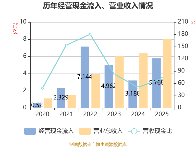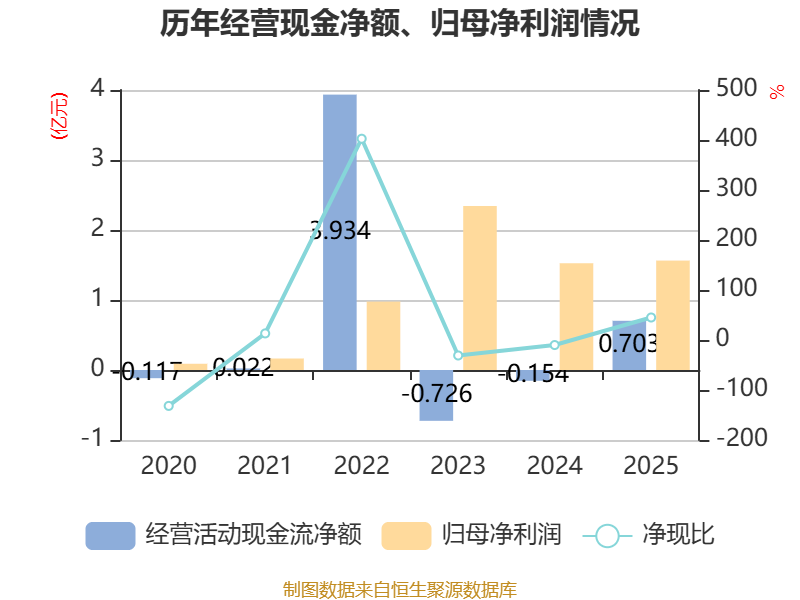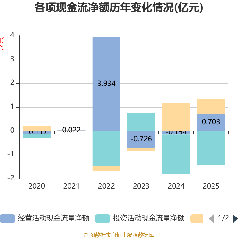 截至2025年,公司经营活动现金流净额为7031.24万元,同比增加8570.83万元;筹资活动现金流净额6310.44万元,同比减少5437.05万元;投资活动现金流净额-1.45亿元,上年同期为-1.66亿元。