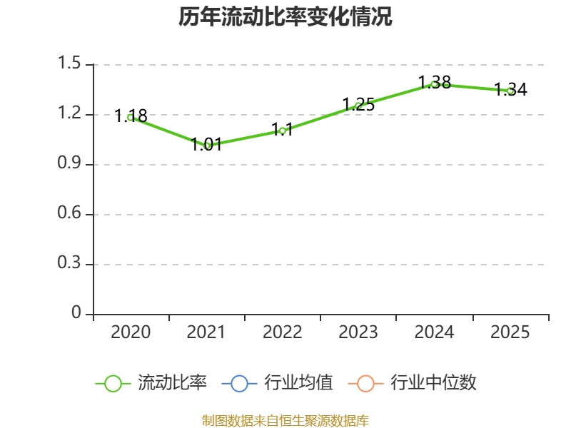 2025年,公司流动比率为1.34,速动比率为0.52。