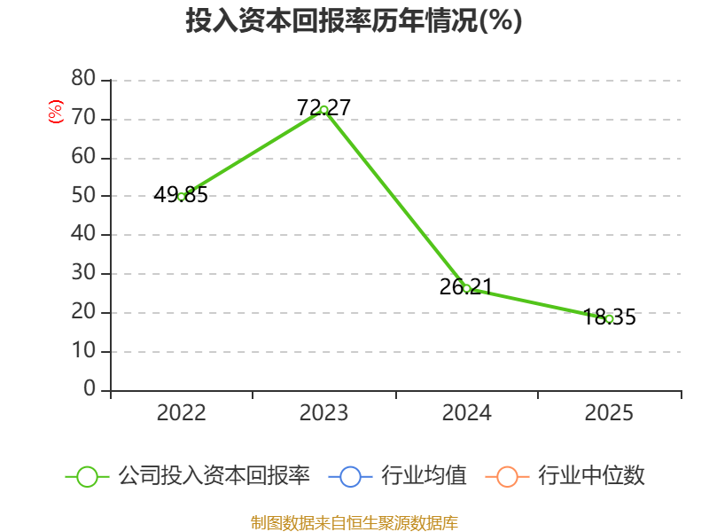 数据显示,2025年公司加权平均净资产收益率为24.08%,较上年同期下降5.45个百分点。公司2025年投入资本回报率为18.35%,较上年同期下降7.86个百分点。