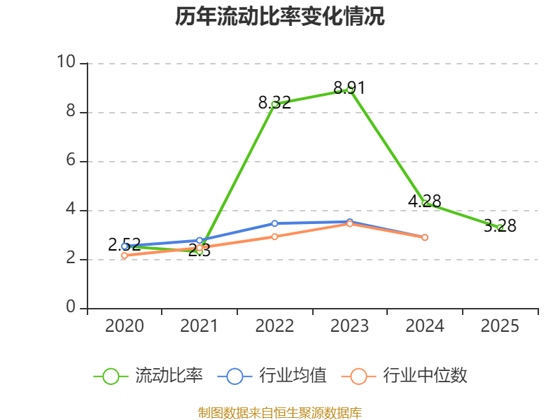 2025年,公司流动比率为3.28,速动比率为2.69。