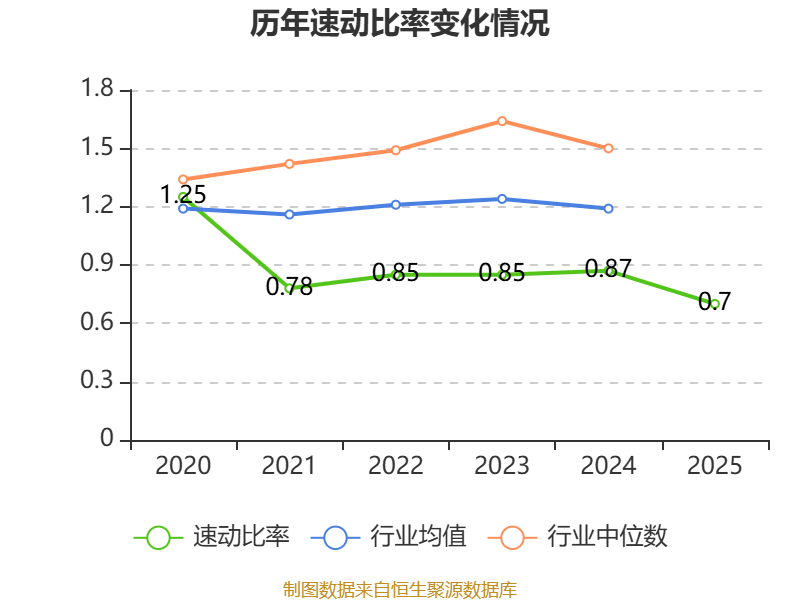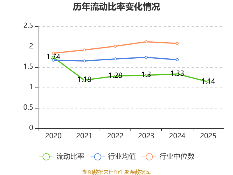 2025年,公司流动比率为1.14,速动比率为0.7。