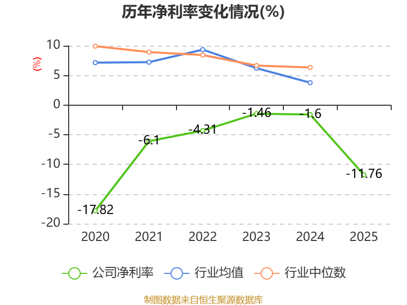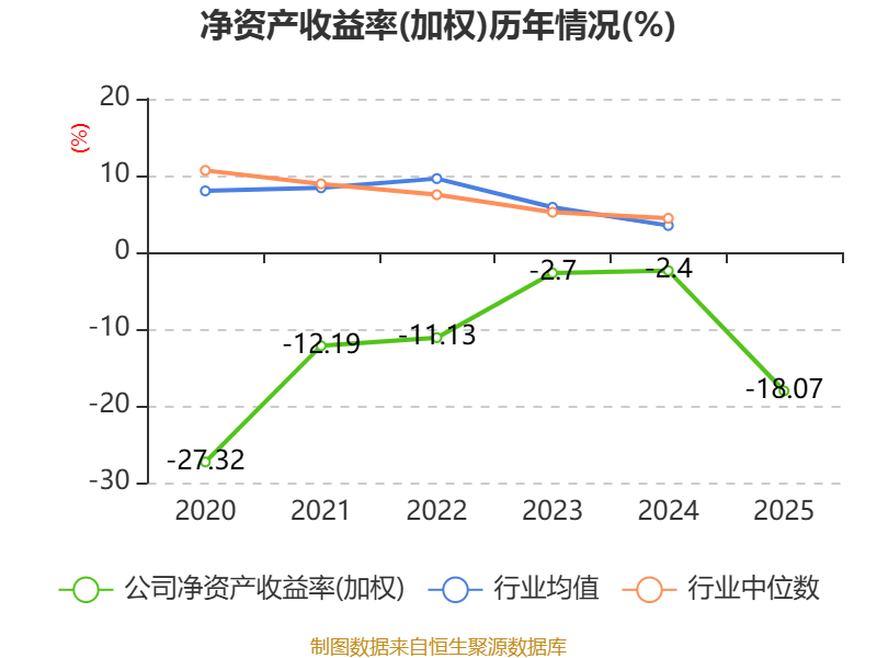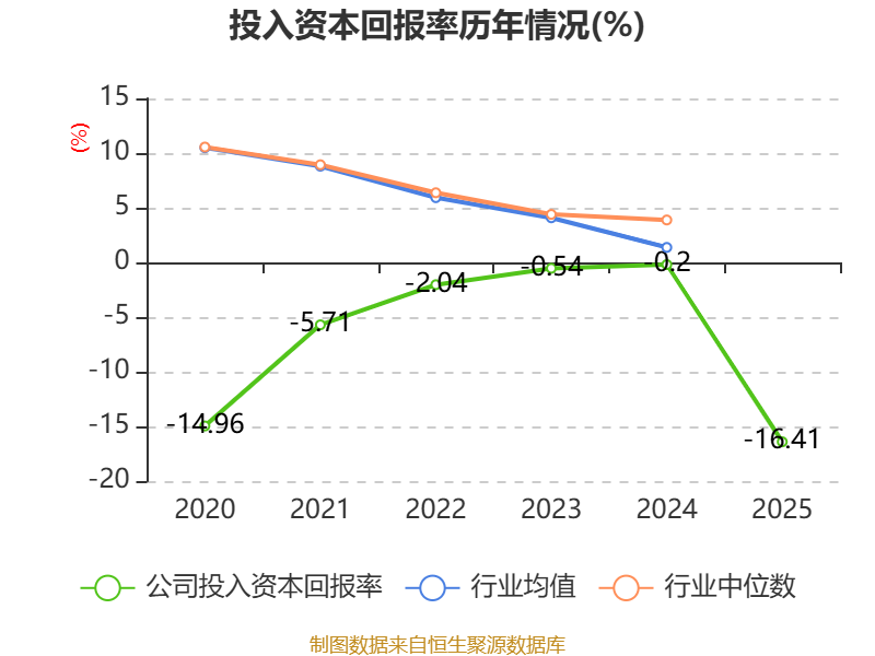 数据显示,2025年公司加权平均净资产收益率为-18.07%,较上年同期下降15.67个百分点。公司2025年投入资本回报率为-16.41%,较上年同期下降16.21个百分点。