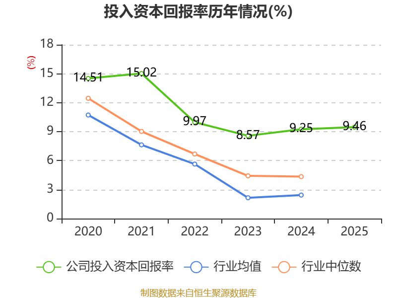 数据显示,2025年公司加权平均净资产收益率为10.58%,较上年同期上升0.36个百分点。公司2025年投入资本回报率为9.46%,较上年同期上升0.21个百分点。